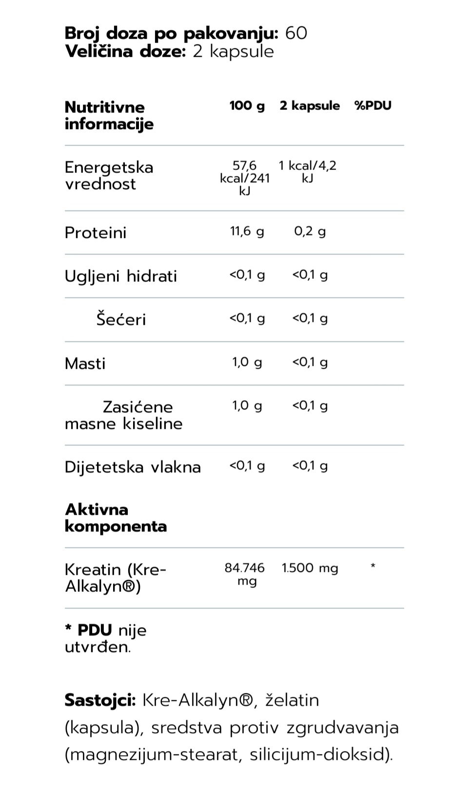 Ekonomičan je suplement kreatina (1 g alkalnog kreatina ekvivalentan je 10 g monohidrata)