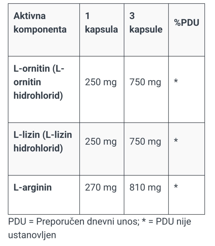L-ornitin spada u grupu neesencijalnih aminokiselina. L-ornitin je posrednik u ciklusu uree i u metabolizmu arginina i na taj način učestvuje u detoksikaciji amonijaka u organizmu. Neophodan je za formiranje drugih aminokiselina: prolina, glutaminske kiseline i glutamata, kao i poliamina. U kombinaciji sa L-argininom deluje na hormon rasta. Nekoliko studija ukazuju da suplementacija argininom, pojedinačno ili u kombinaciji sa drugim aminokiselinama, u organizmu povećava nivo somatotropina, čiji se potencijalni benefit ogleda u redukciji telesnih masti, ubrzanju oporavka organizma i zaceljivanju rana. L-lizin spada u esencijalne aminokiseline koje se ne sintetišu u organizmu već se jedino mogu uneti putem hrane. Neophodan je za stvaranje antitela, hormona, enzima i vezivnog tkiva. Važan je za rast i razvoj skeleta, pomaže apsorpciju i skladištenje kalcijuma, učestvuje u stvaranju kolagena i drugih vlaknastih proteina neophodnih za obnavljanje tkiva. Dijetarni izvori lizina su: riba, mleko, sir, meso, kvasac, pasulj, soja. Ishranu, koja za izvor esencijalnih aminokiselina koristi isključivo proteine iz žitarica, može da prati deficijencija lizina. Povećane potrebe za lizinom mogu imati sportisti, ali i osobe izložene jakom fizičkom naporu. Lizin sa ostalim aminokiselinama učestvuje u izgradnji misićne mase, održavanju azotne rezerve, odnosno predstavlja gradivni blok za sve proteine u organizmu. Zbog svog udela u stvaranju kolagena za vezivna tkiva, lizin je značajan za oporavak od povreda i operacija.