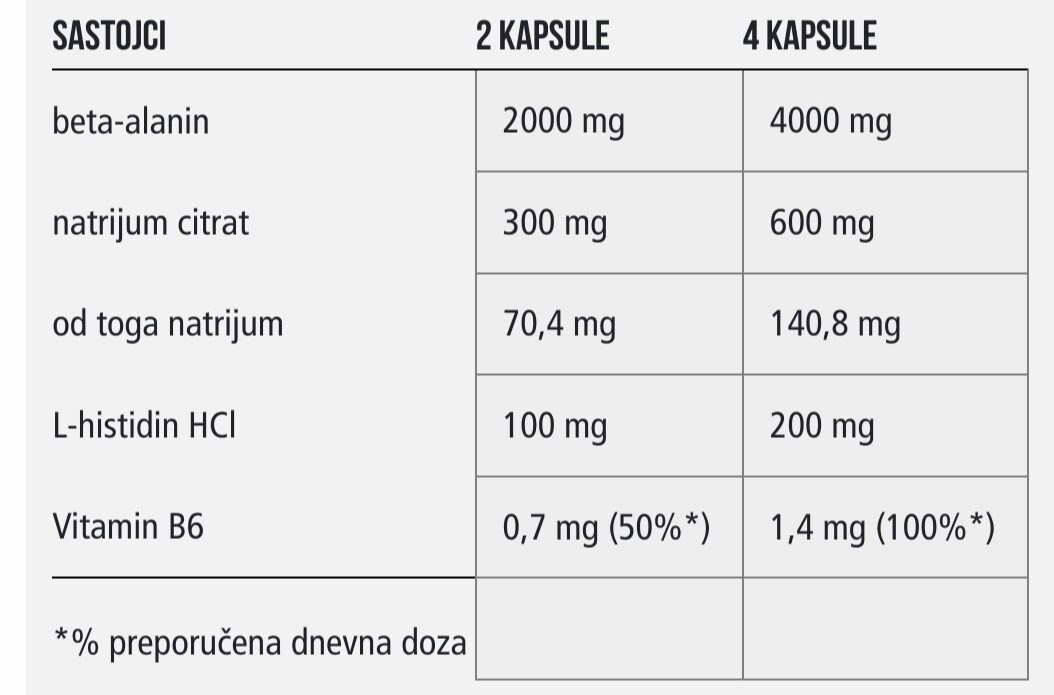 4 grama čistog beta-alanina
