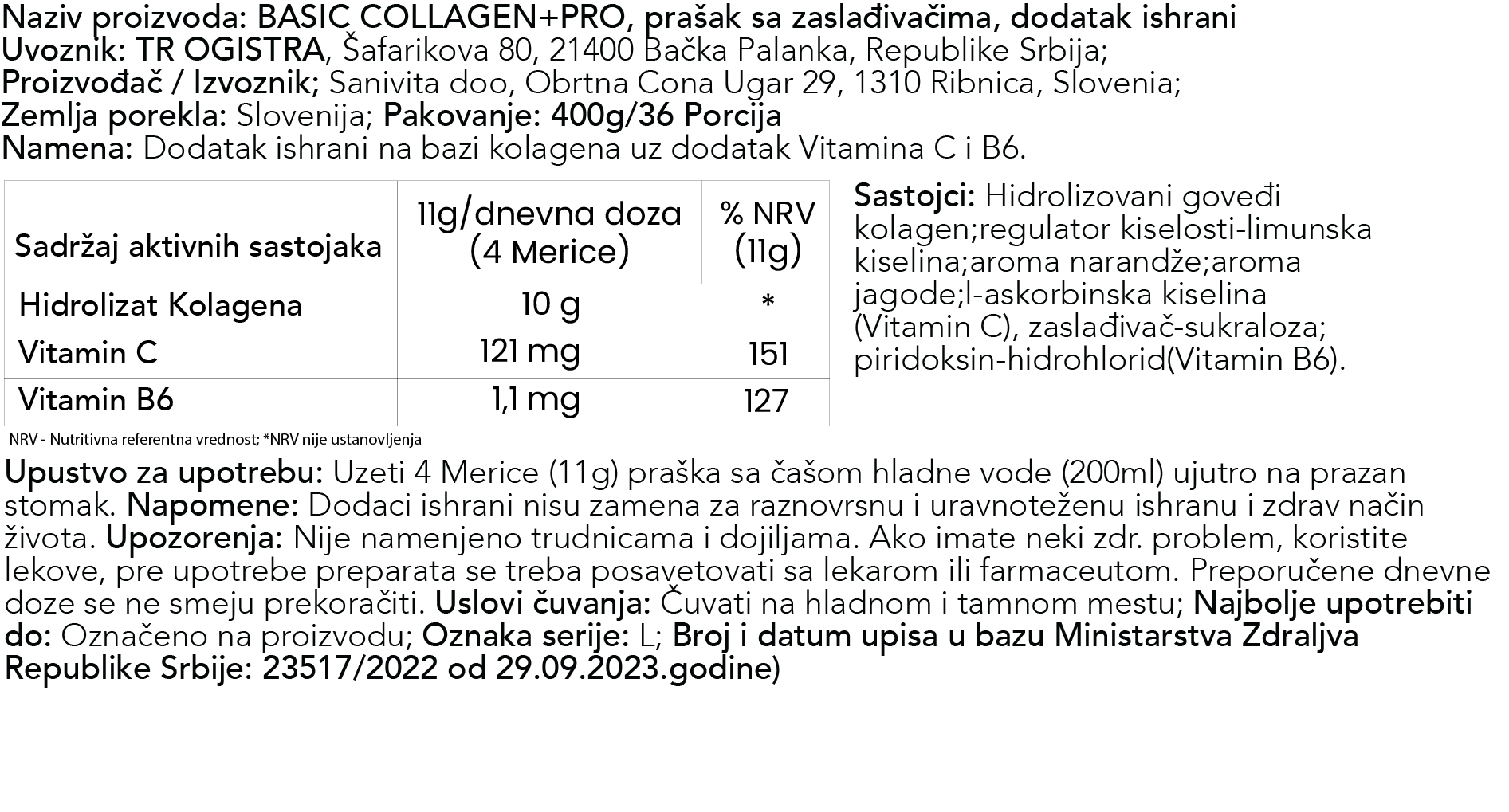 Vitamin C dodatno poboljšava apsorbovanje i sintezu kolagena. U ovoj verziji, kolagen direktno utiče na jačanje i obnovu ćelija vezivnih tkiva, ligamenata, kostiju, zglobova i tetiva, ali deluje i na regeneraciju kose, kože i noktiju.