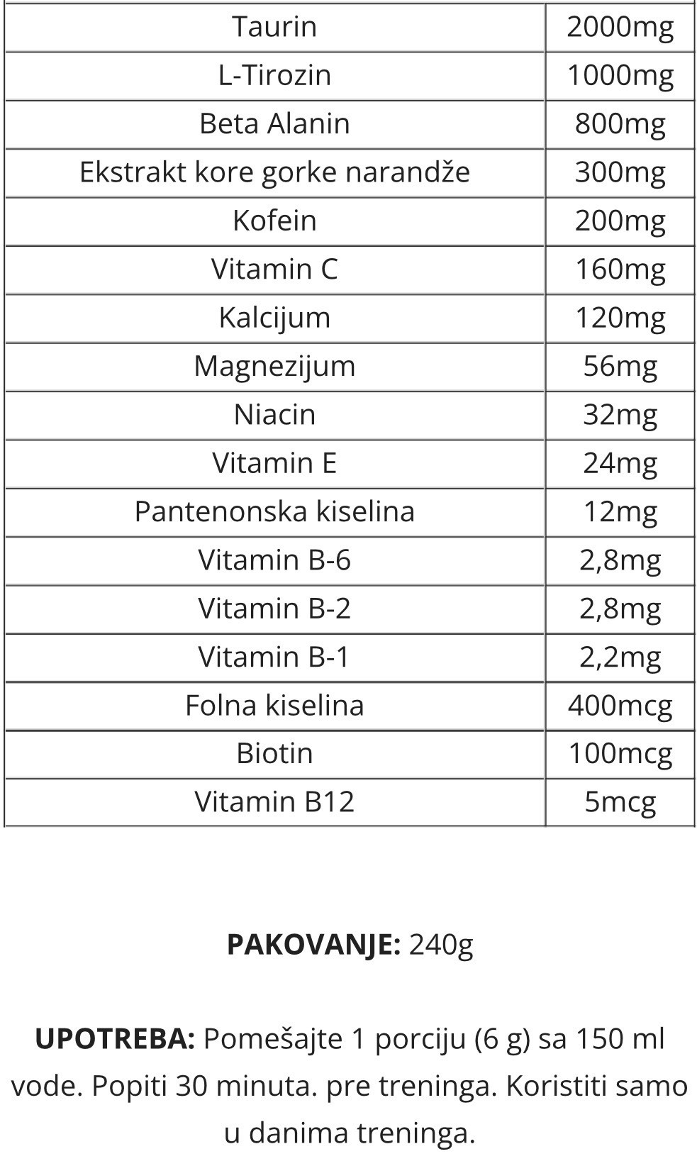 - visoka doza kofeina po dozi, 200mg