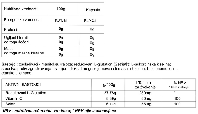 Za porudžbine preko 6.000 RSD *BESPLATNA DOSTAVAGLR je dijetetski suplement baziran na redukovanom glutationu (Setria), sa vitaminima C i selenom. Posebno treba naglasiti da i vitamini C i selen doprinose zaštiti ćelija od oksidativnog stresa, dok vitamini C takođe promovišu regeneraciju redukovane forme vitamina E.