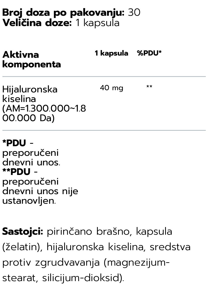Hyaluronic acid 30cap/40mg - Haya Labs