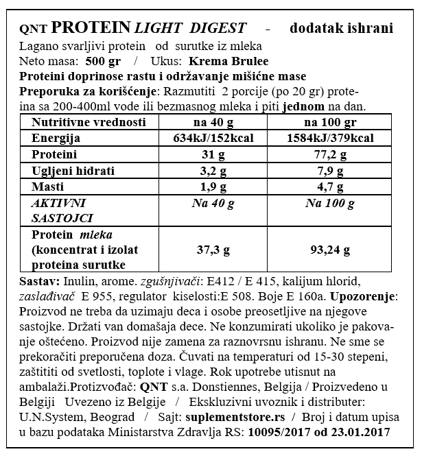 Light Digest Whey je mešavina koncetrata proteina surutke i izolata koji sadrži veliku količinu BCAA aminokiselina razgranatog lanca koje su neophodne za oporavak i mišićni razvoj. Obogaćen je inulinskim vlaknima (620mg po porciji), Inulin je prebiotik koji podstiče rast i produktivnost probiotika u digestivnom sistemu, koji dalje utiču na celokupno zdravlje organizma i imunitet.