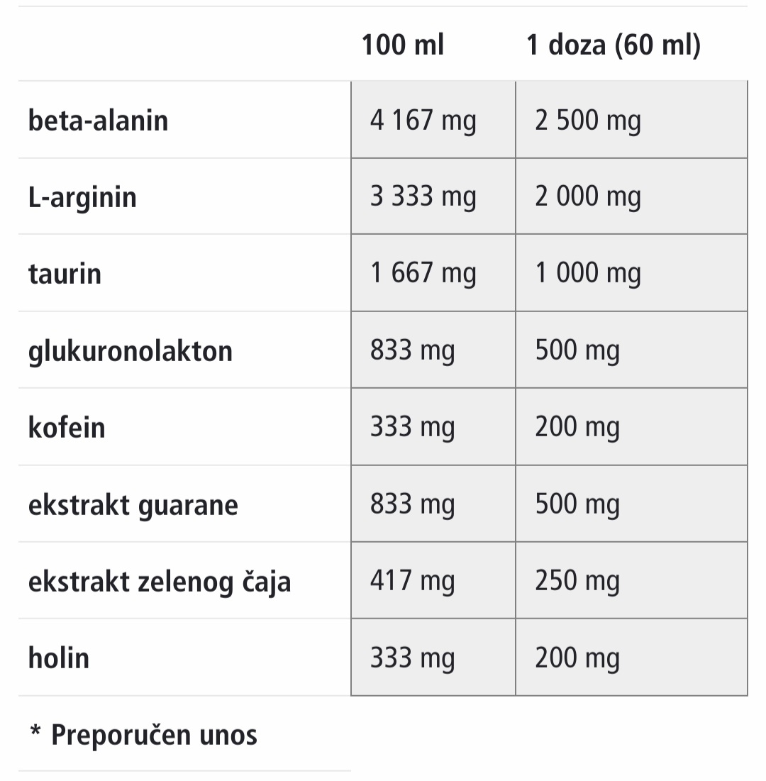 Novi N1 pre-workout SHOT je prvenstveno namenjen svim sportistima, koji žele produžiti stimulativni učinak za postizanje maksimalnog kapaciteta. Profesionalni stimulans u tečnom obliku, namenjen za direktnu upotrebu, bez prethodne pripreme. S jednakim učinkom, ili možda čak i boljom stimulacijom tela od njegove instant varijante u prahu. Sadrži najefikasnije sastojke. Osećaj peckanja u telu (parestezija) je prirodna reakcija tela na vrlo efikasne ekstrakte, koji se nalaze u ovom proizvodu.