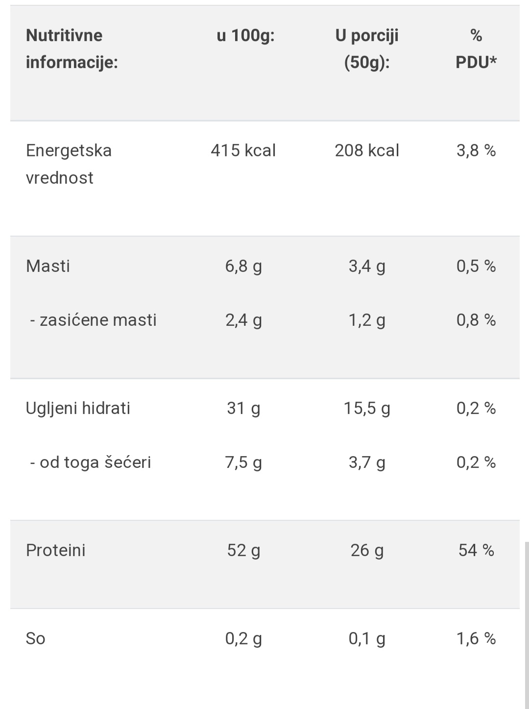 Visok sadržaj proteina surutke, kazeina i belanaca