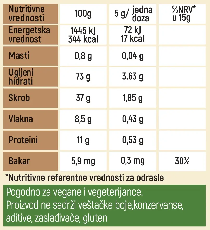 Sastojci: 100% organska maka u prahu. Pakovanje traje oko 5 nedelja.